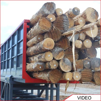 Top loading the Acculoader with logs then trasferring them into a container for transport.