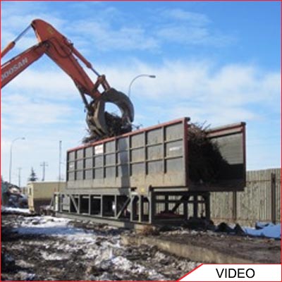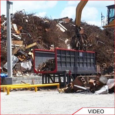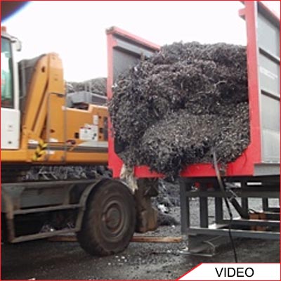 Container loading video of a front loader filling up the Acculoader with 25 metric tons of shred.
