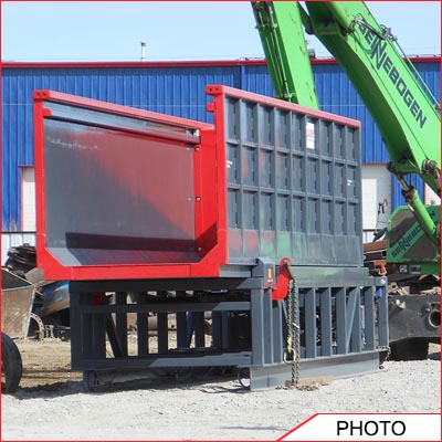 A container loading machine with a small footprint that will fit in any size scrap yard.