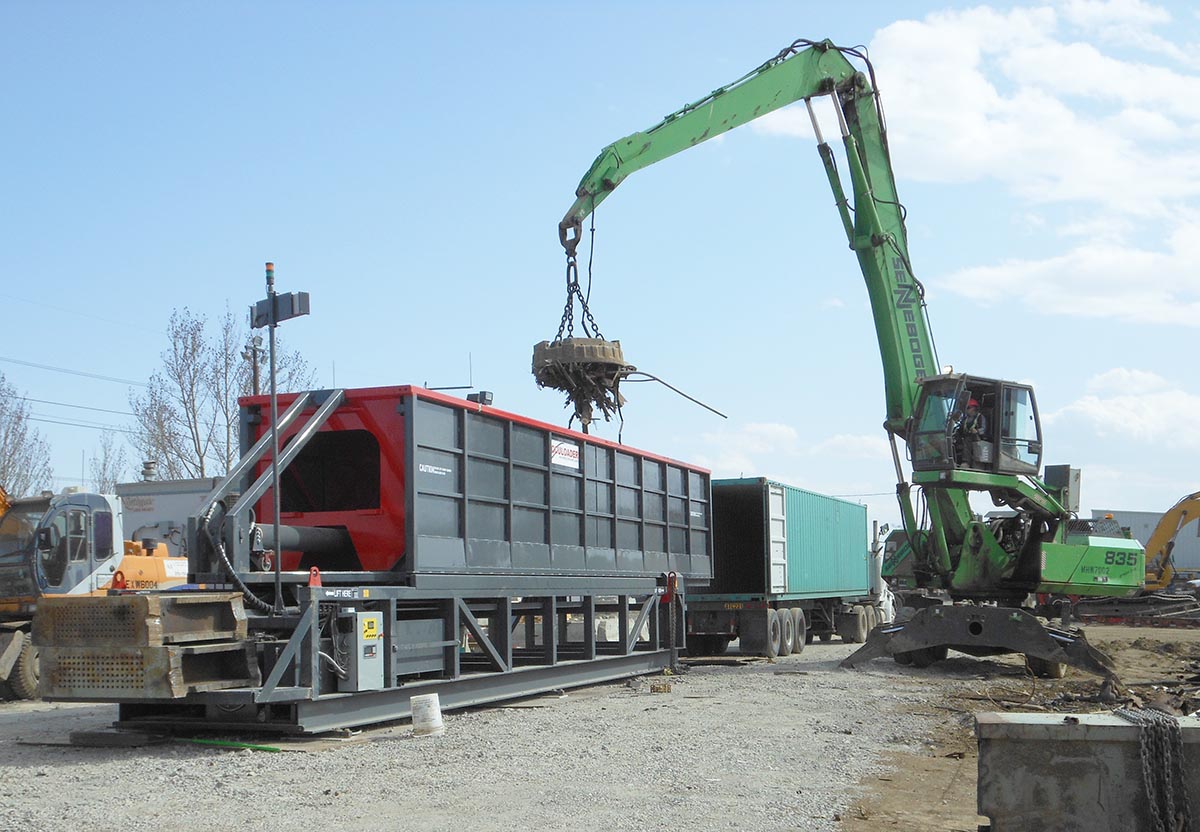 Acculoader container loader installed in a scrap yard ready for its first load.