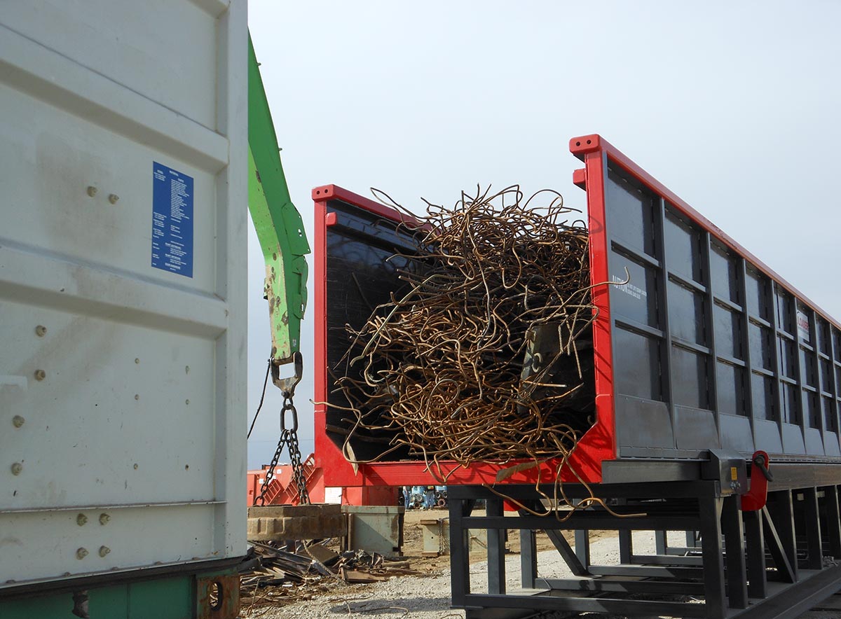 Scrap iron container loading is a breeze for the Acculoader because of its heavy duty design.